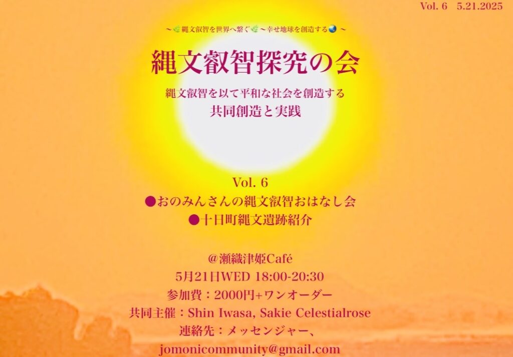 🔸縄文叡智探究会🔸(瀬織津姫カフェにおいて開催)